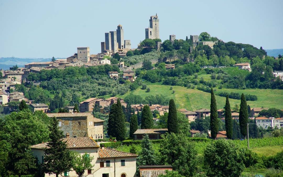 Les 13 tours restantes de la ville de San Gimignano mesurent entre 50 et 60 mètres de haut. Ils ont été construits par des familles nobles aux XIIe et XIIIe siècles, lorsque la ville a prospéré en tant que route de pèlerinage vers Rome et le reste de l'Europe. Mais la peste de 1348 et le détournement du chemin des pèlerins provoquèrent le déclin de la ville. Aujourd'hui, seule la Tour épaisse est ouverte aux visiteurs. Pour une petite ville, San Gimignano est riche en œuvres d'art, bonnes boutiques et restaurants.